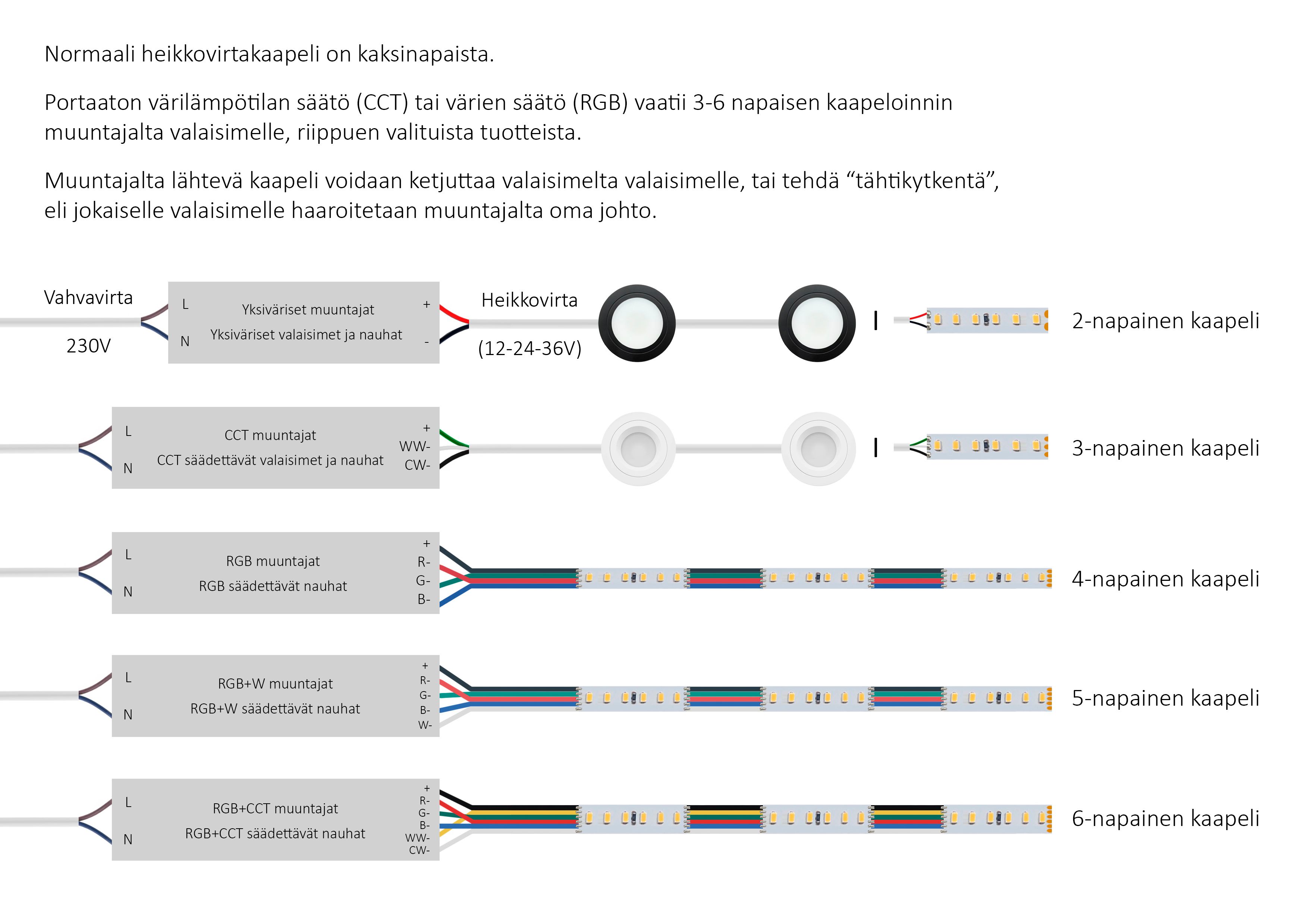 ad esempio, 4x 9W CCT spot = 45W, quindi il più vicino è 50W